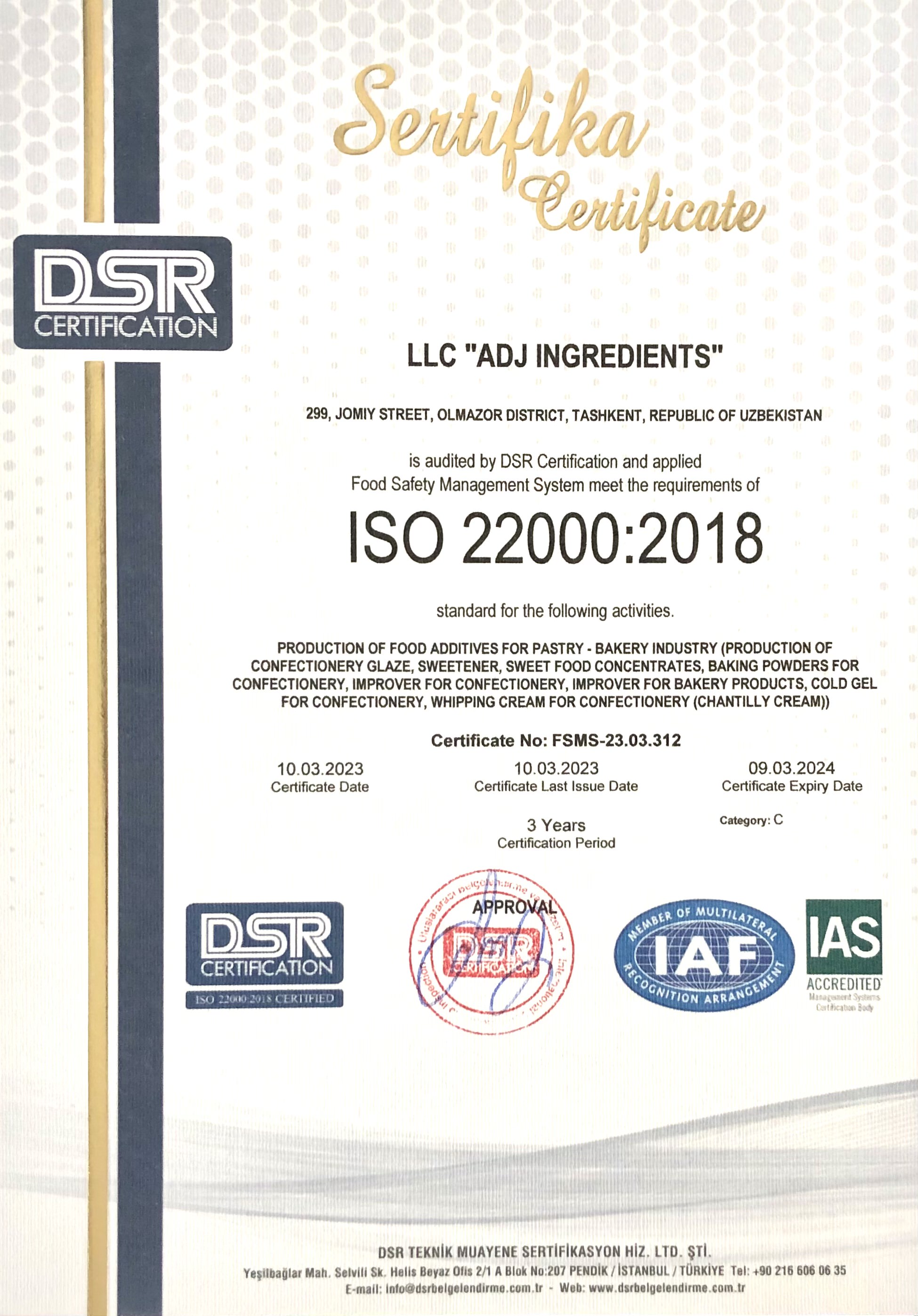 ООО “ADJ INGREDIENTS” был основан в 2016 году. Наша компания